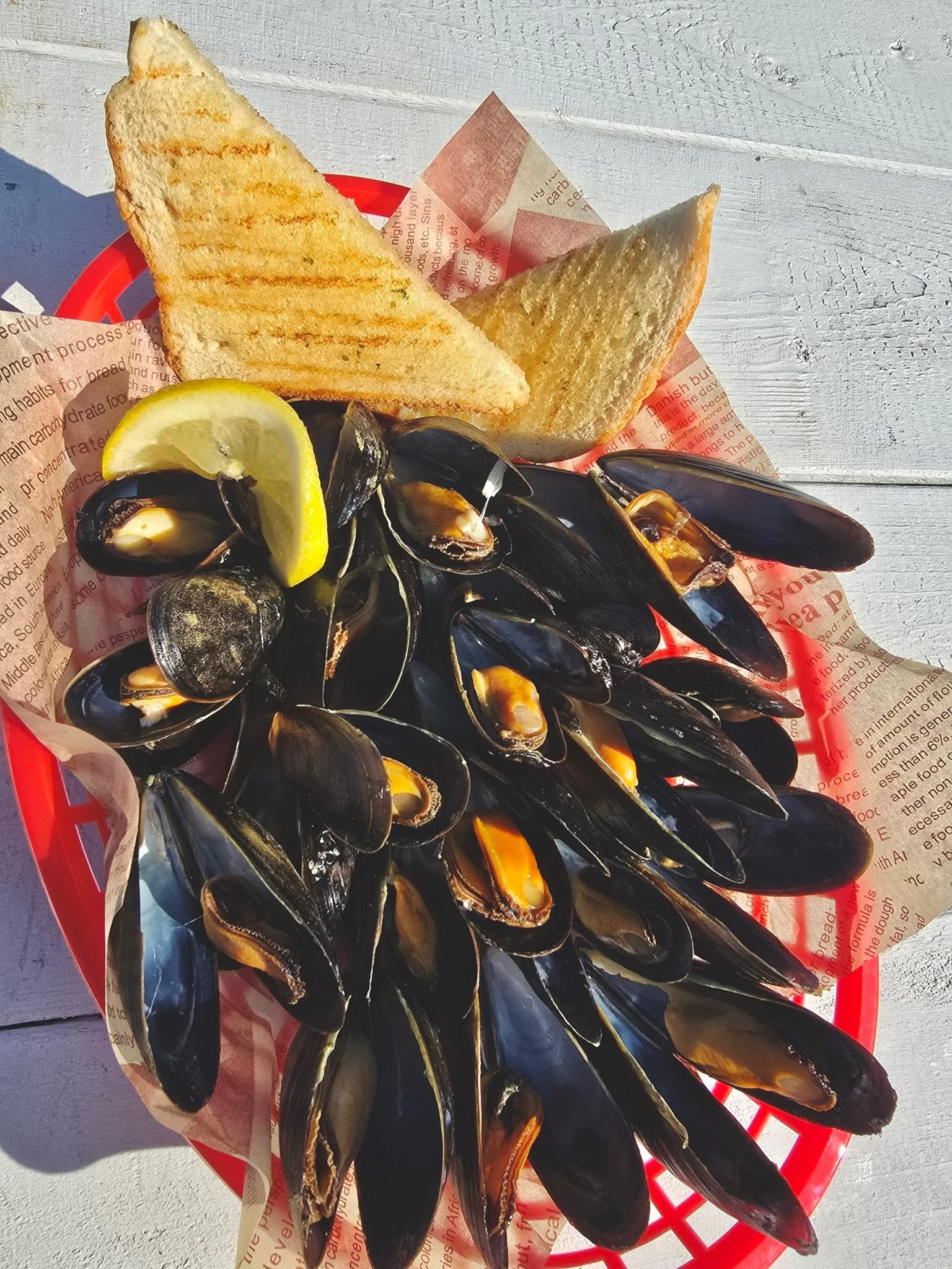 Lobster, Crab & Mussels. Pick your own from our holding tank and we will cook it or you can help cook it with us.